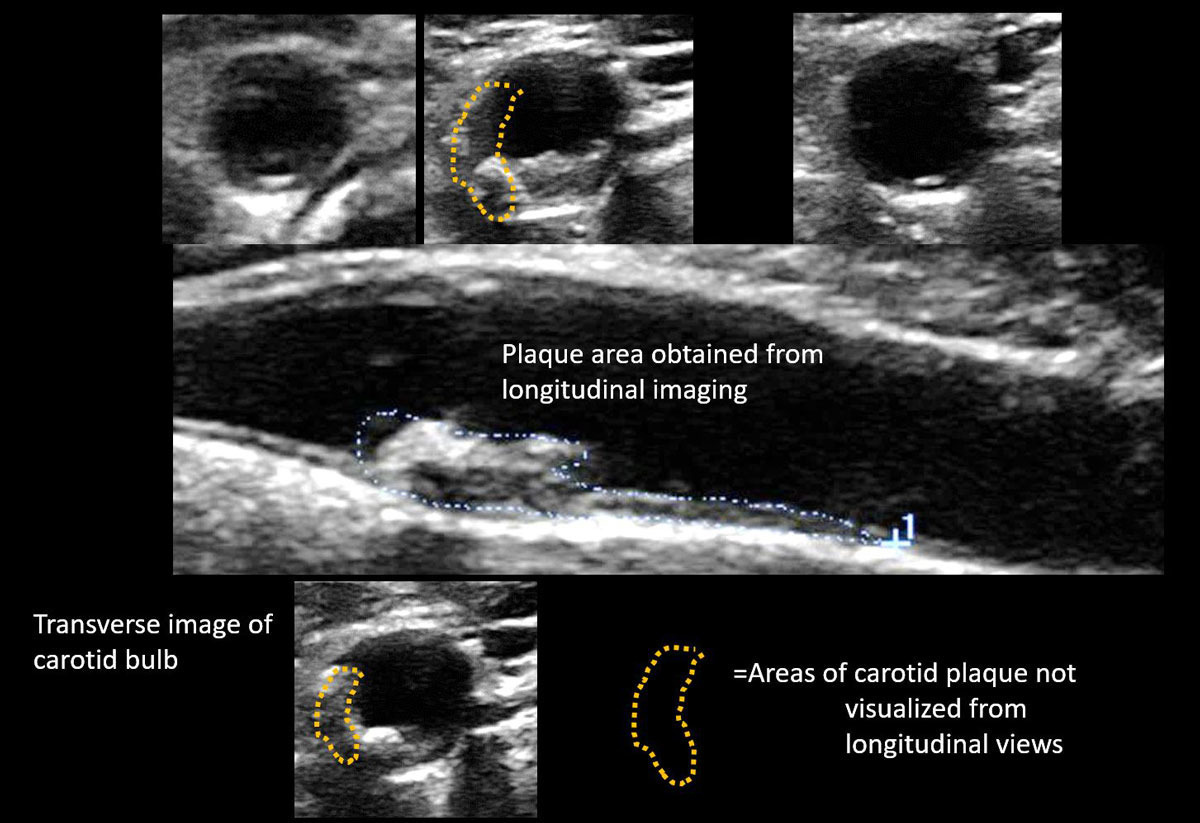 - 경동맥 플라크(atheromatous plaque): 초음파 영상에서 관찰되는 지방침착물로, 단단한 석회화 플라크는 혈관 내피를 손상시키고 혈전 형성을 유발할 수 있습니다.