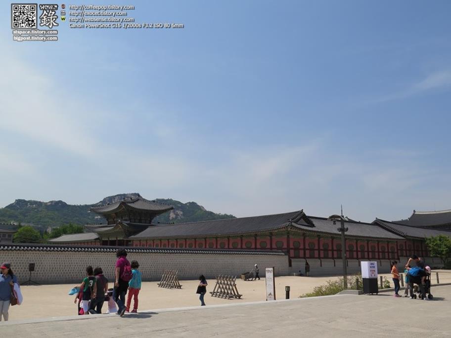 홍례문 너머로 인왕산이 보이고 있다.