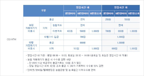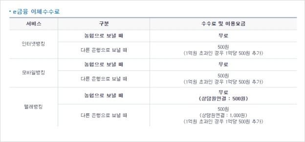 농협 계좌이체 수수료