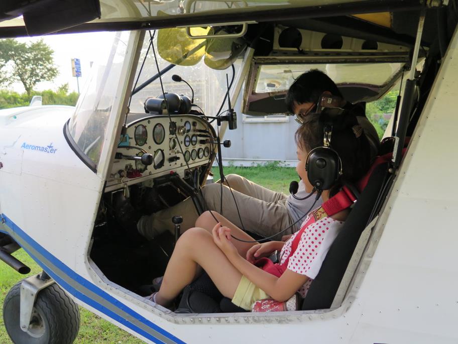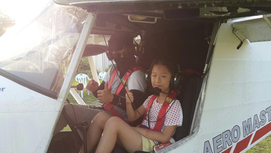 겁쟁이 딸래미를 꼬드겨서 비행기에 태웠다.