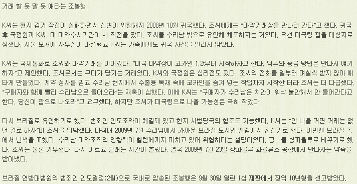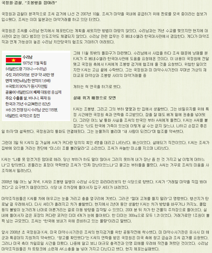 수리남 마약왕 조봉행의 이야기