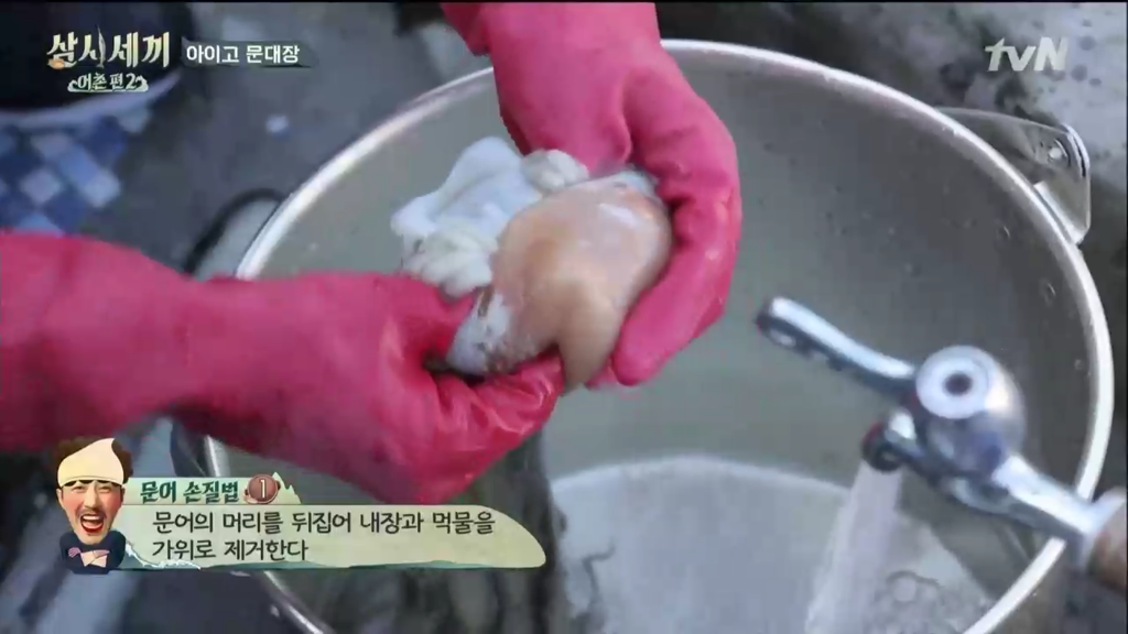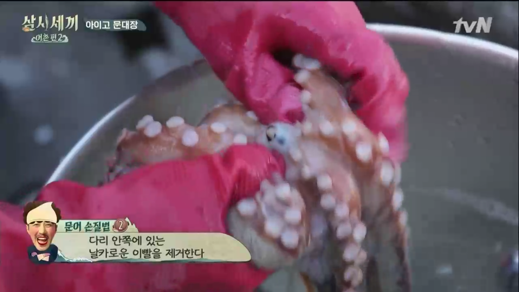 잡은 문어를 손질해야겠죠.