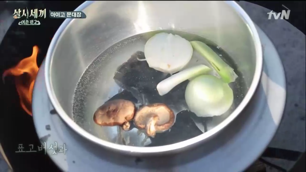 다싯물 재료를 다 때려 넣고 다싯물을 우림.