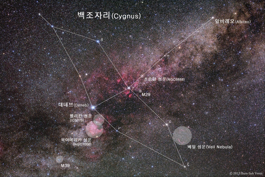 백조자리(Cygnus)는 여름철 밤하늘에서 은하수 위를 날개를 펴고 나르는 백조의 모습을 형상화한 멋진 별자리입니다. 그러나 이 아름다운 별자리의 유래는 그리스 신화의 주인공, 제우스와 관련이 있어 기분이 잡히기도 합니다. 백조자리는 한국에서는 고니자리라고도 불리는데, 이는 두 가지 이름을 혼용하여 사용하는 관습 때문입니다. 영어로는 Cygnus, 그리스어로는 Kyknus(Κύκνος)로 불립니다.
