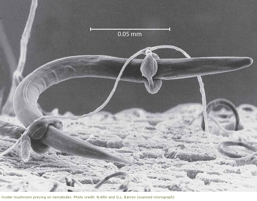 버섯도 육식을 한다. 살아있는 동물을 포식하는 육식 버섯 느타리버섯