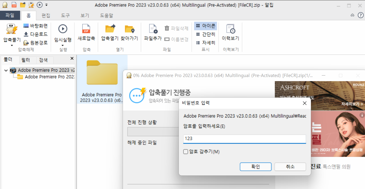 - 다운로드가 완료되면 압축 파일을 해제합니다. 비밀번호는 "123"입니다.