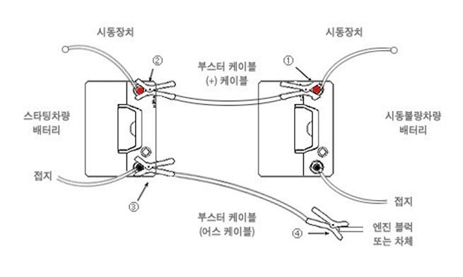 자동차 밧데리 연결방법 방전 차 배터리 점프방법