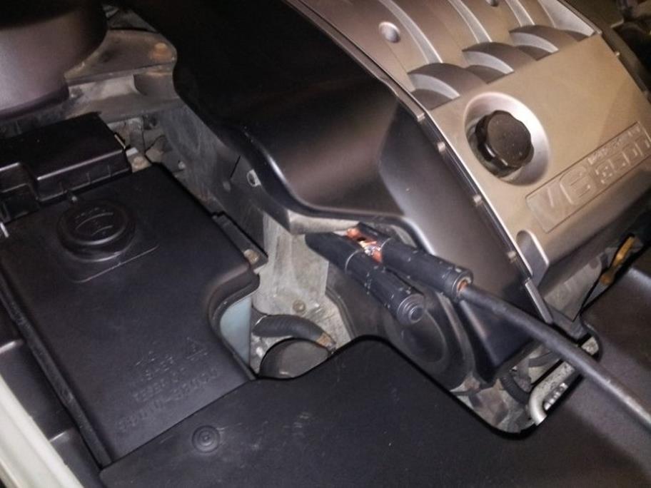정상차량의 음극(검은색)에 연결된 선은 방전된 차량의 자동차 배터리가 아닌 , 엔진룸의 섀시등 금 속부위에 검은색 집게를 찝어주세요 .( 절대 중요 !!) 접지를 하는거예요.