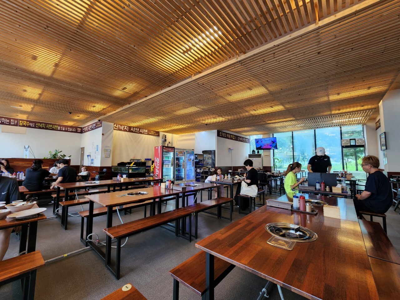 작년에 처음 방문했을 때의 모습과 비교했을 때, 가게의 크기가 줄어들었습니다. 넓은 홀에 비해 손님이 그리 많지 않아서 홀을 좀 줄인 모양입니다. 그러나 그 여유로운 공간과 비교해 보면, 이 맛집을 찾는 이들은 아직 많지 않습니다. 이곳에서는 백합조개 칼국수를 먹고 난 뒤에 먹는 담백한 계란죽이 일품입니다.