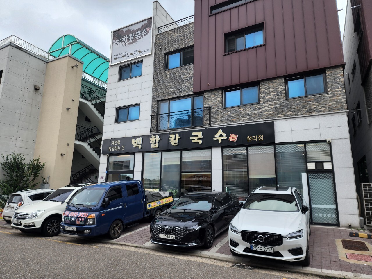 청라 백합칼국수에 가게를 찾아가려면 주차를 고려해야 합니다. 가게 앞에는 5대가량의 주차면이 마련되어 있습니다. 평일이라면 주변에 주차 공간을 찾아볼 수 있습니다. 주말에는...그냥 택시 타고 가시길 바랍니다.