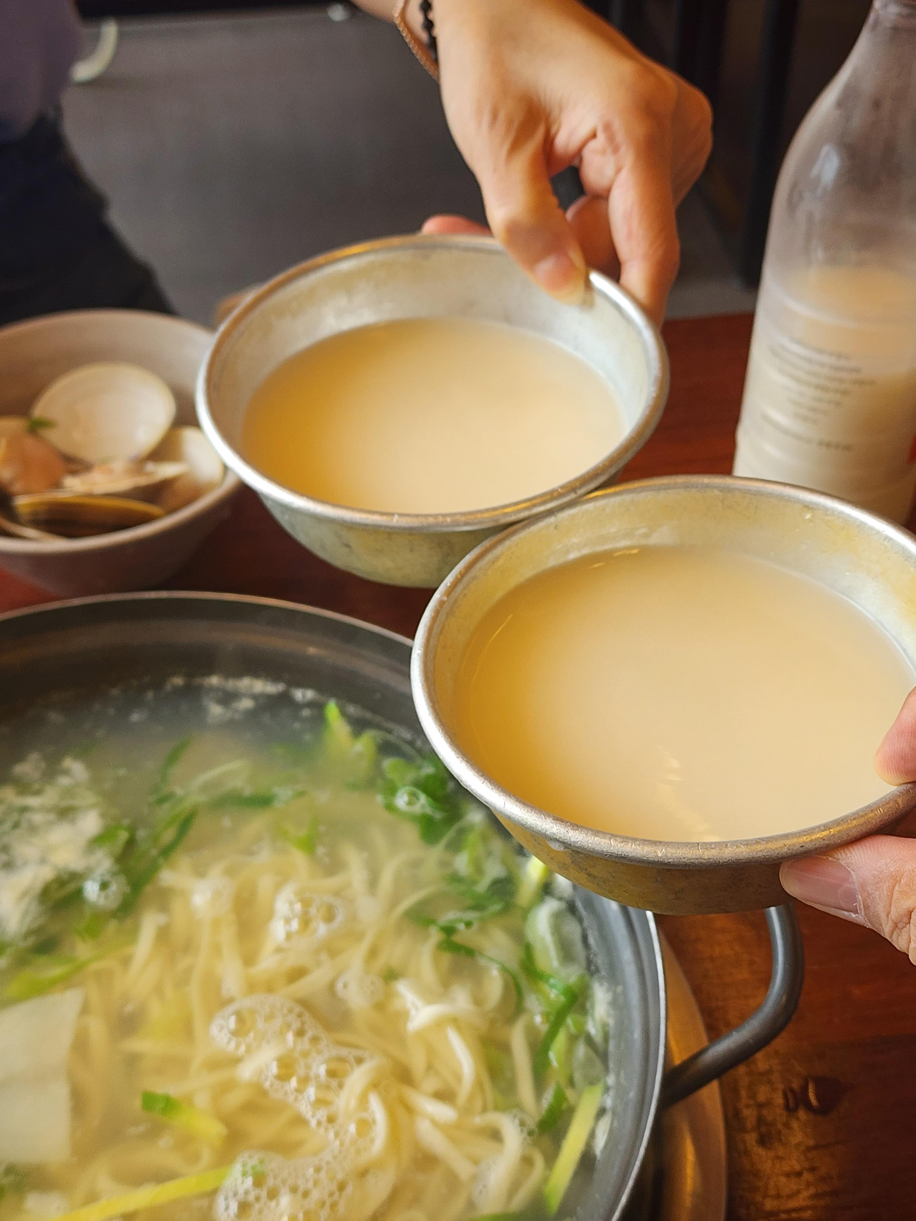 청라 백합칼국수와 동네방네 인천항 막걸리의 완벽한 조합
