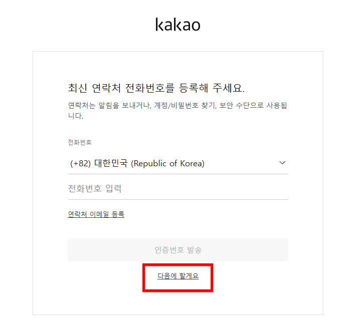 - 휴대폰 번호 대신 '다음에 할게요' 선택 가능