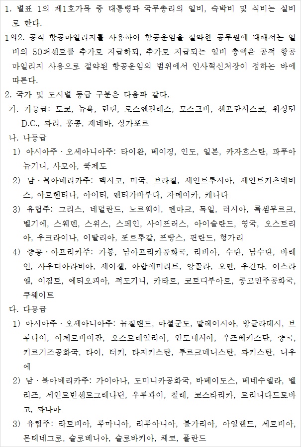 2021년 공무원 여비규정 - 공무원의 국내 국외 출장여비에 관한 규정입니다.