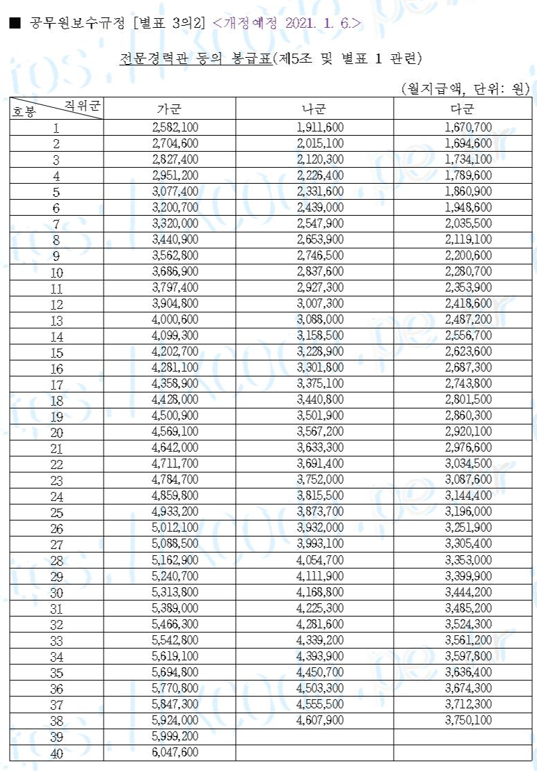 2021년 공무원 봉급 인상 2021 공무원 봉급표 직업군인 월급 내년 장교 부사관 급여