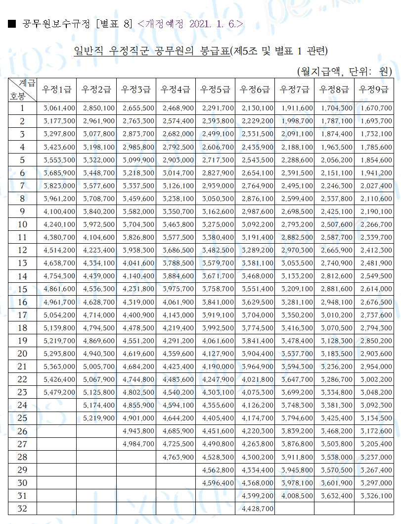2020 공무원 월급표를 기반으로 2021년 공무원 봉급표를 가늠해 볼 수 있다.